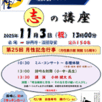 - 第25回月性記念行事(開館55周年)(2025年11月3日)開館55周年を記念する今年のイベントは、京都ノートルダム女子大学講師、小林健太さんの講演会に加え、子どもたちの… 続きを読む: 第25回月性記念行事(開館55周年)(2025年11月3日)
